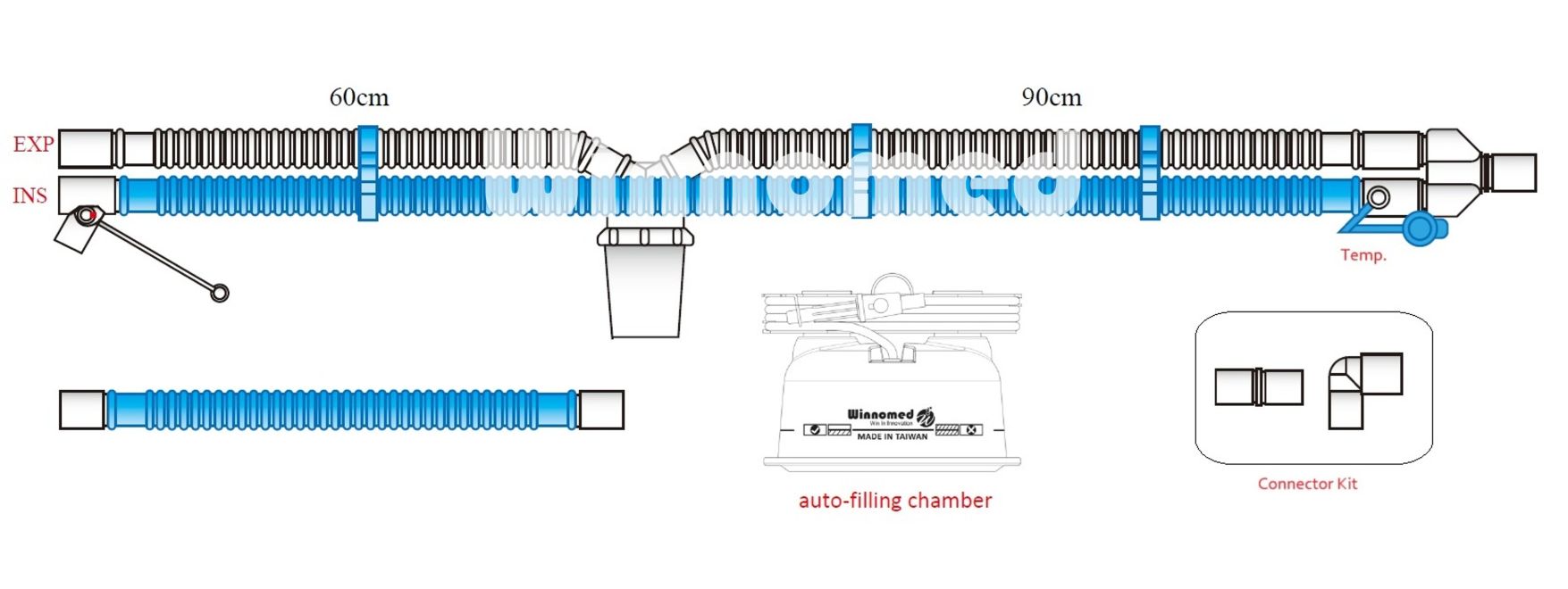 | 55103 | Inspiratory Single Heated Wire Circuit w/ Auto-Filling Chamber, Disposable | Adult |